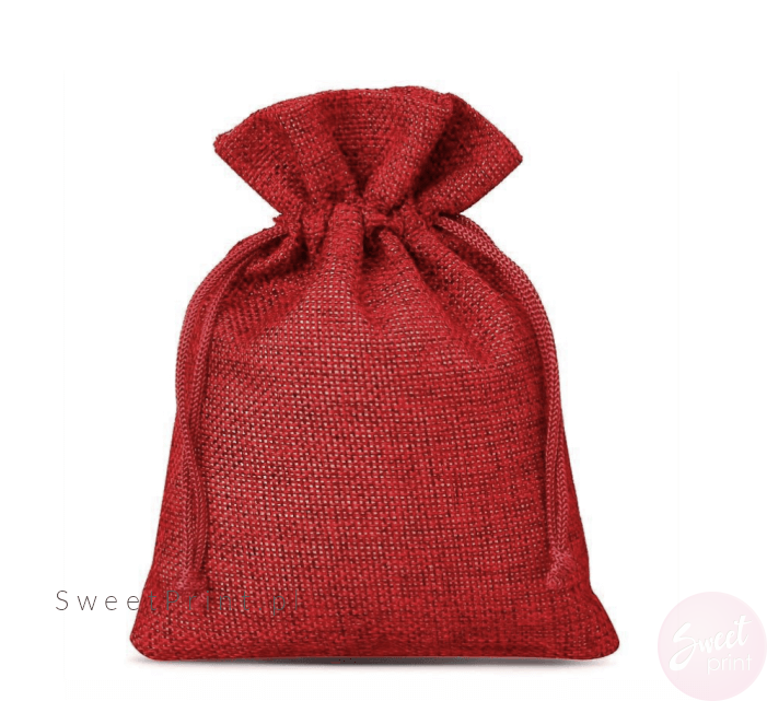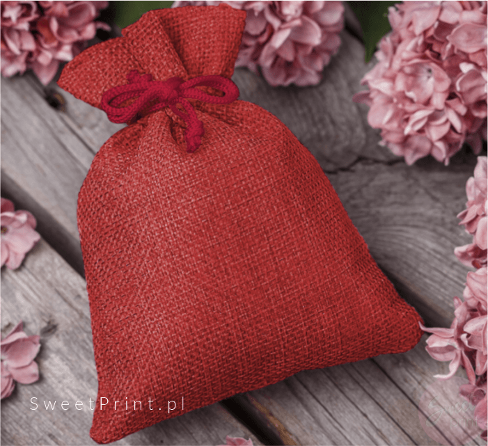 Mały, jutowy woreczek będzie idealny do zapakowania stempla, produktów handmade, słodkości, upominków ślubnych, lub bożonarodzeniowych upominków.