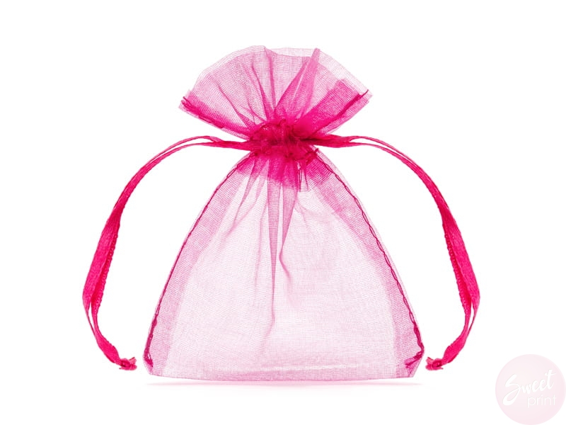 Woreczek z organzy - ciemny róż 7,5x10 cm