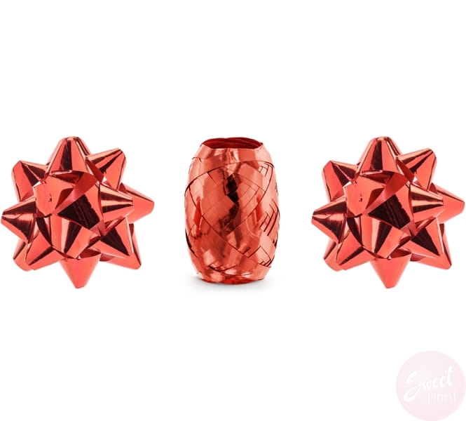 Nadaj paczkom i prezentom blasku, dzięki tym czerwonym dekoracjom. Metalizowana wstążka i dwie rozetki sprawią, że każda, przygotowana przez Ciebie paczka nabierze blasku!