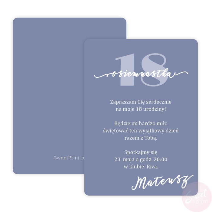 Zaproszenia na 18 urodziny NIEBIESKIE