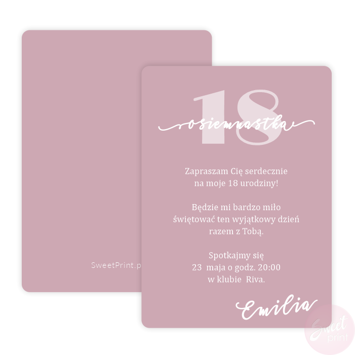 Planujesz niezapomniane 18 urodziny? Nasze eleganckie zaproszenia urodzinowe będą idealnym wyborem! Zaprojektowane z dbałością o detale, w subtelnej, pastelowej kolorystyce, doskonale oddają wyjątkowy charakter tej okazji. Personalizowane zaproszenia na 18 dzięki wysokiej jakości druku i starannemu wykonaniu z pewnością zrobią wrażenie na Twoich znajomych i bliskich.