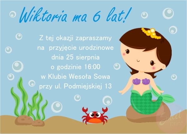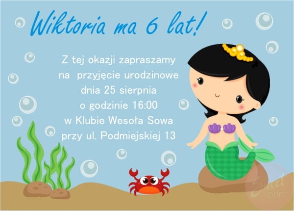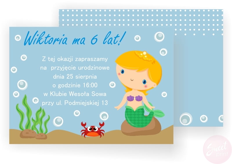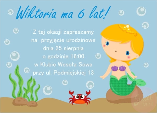 Zaproszenia z syrenką oraz z personalizowaną treścią