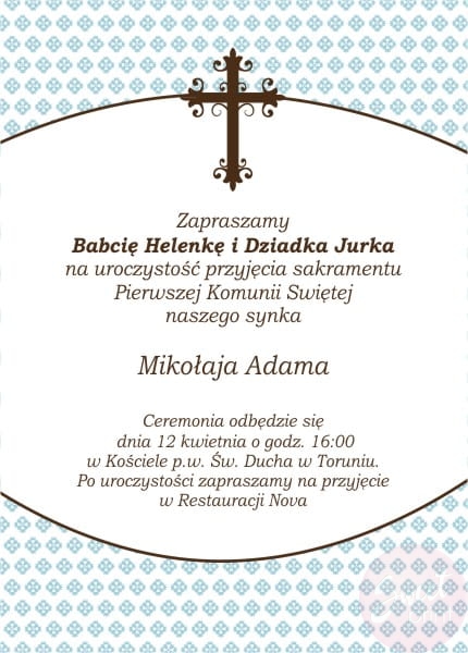 Piękne, stylowe zaproszenie na Chrzest lub Pierwszą Komunię.