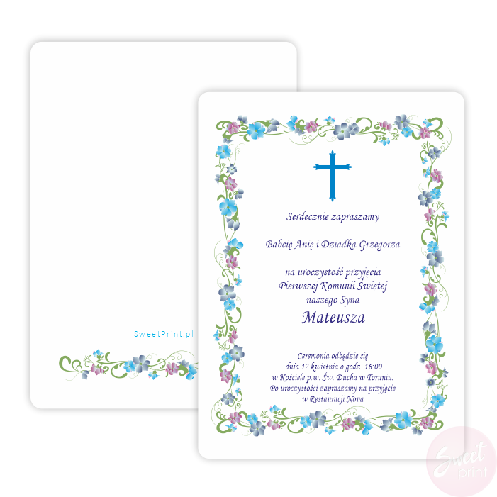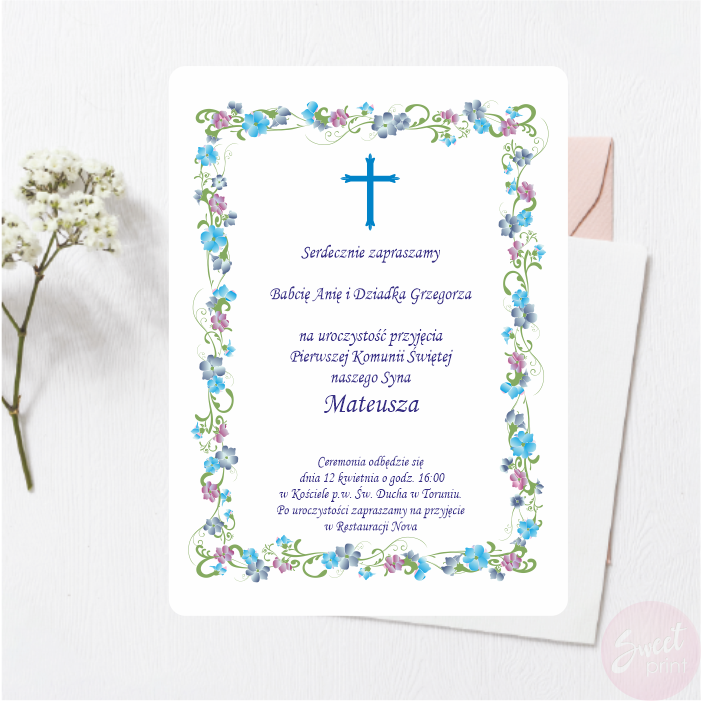 Zaproszenie na Pierwszą Komunię / Chrzest Romantic