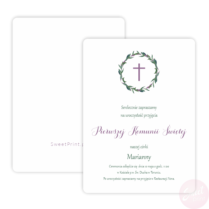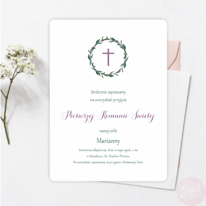 Zaproszenie na Pierwszą Komunię / Chrzest WIANEK