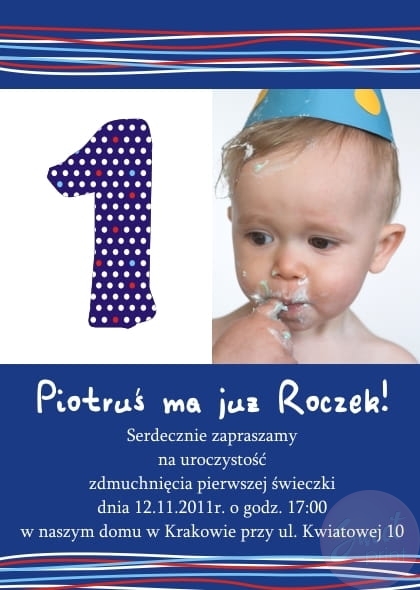 Nie ma lepszego sposobu, aby zaprosić gości niż te wesołe, kolorowe zaproszenie ze zdjęciem Twojej pociechy oraz cyferką.