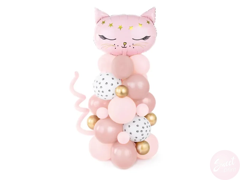 Balonowa dekoracja z różowym kotkiem będzie idealna: